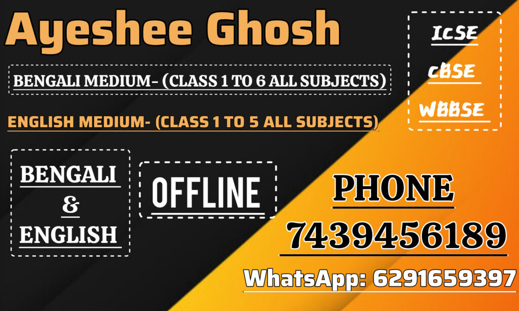 I am a teacher. My name is Ayeshee Ghosh. I am a graduate. I live in Salkia Ghosh para lane. I need some tution so plz help me. I teach bengali medium and English medium class 1 to 6