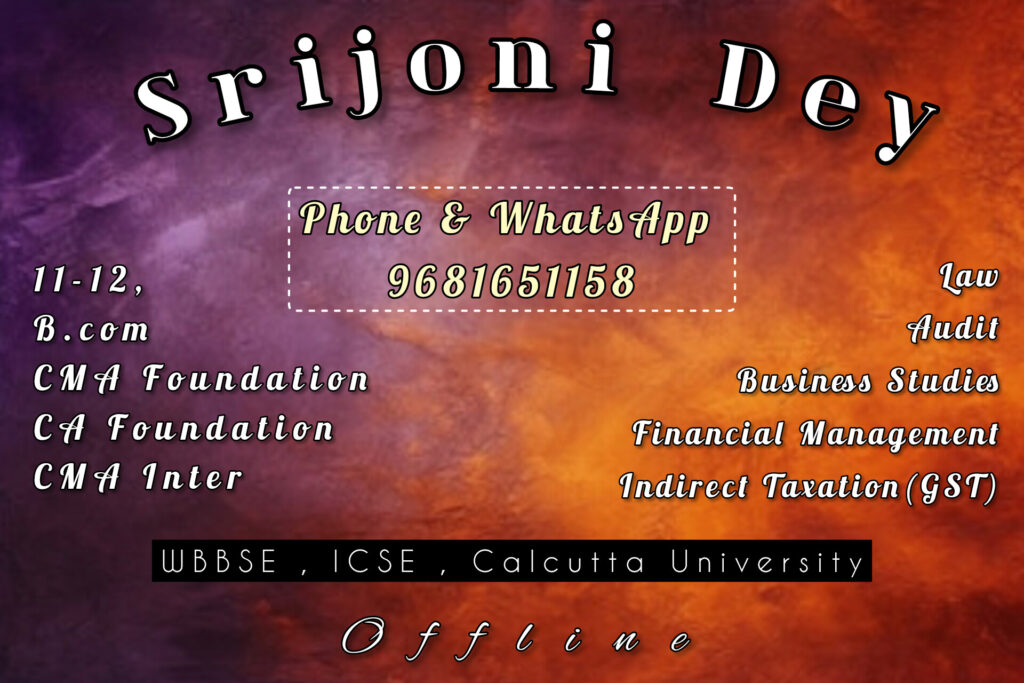 My name is Srijoni Dey. i graduated from Calcutta University on B.com (hons). As well as I completed CMA intermediate on dec 2023 term. I am willing to teach students the theory papers.